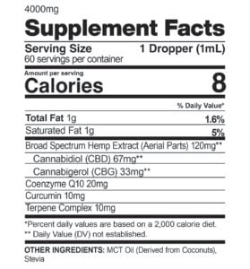 So, what makes this Wellness 2:1 Tincture a “super blend” that helps impart so many essential nutrients and vitamins? Besides CBD and CBG, curcumin is the active ingredient in turmeric; and it’s a natural, yet powerful antioxidant and anti-inflammatory that people have been taking advantage of for centuries. Coenzyme Q10, also known as CoQ10, has a wide range of health benefits as well. CoQ10 is a nutrient that is naturally produced within our bodies and plays a vital role in energy production and much more, but as we get older the natural production of this nutrient slows. By supplementing with CoQ10, you’re helping your body function at its highest level, day in and day out.